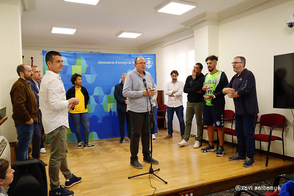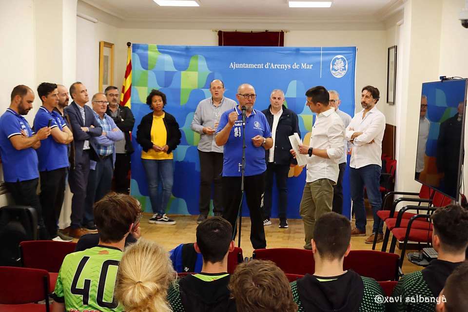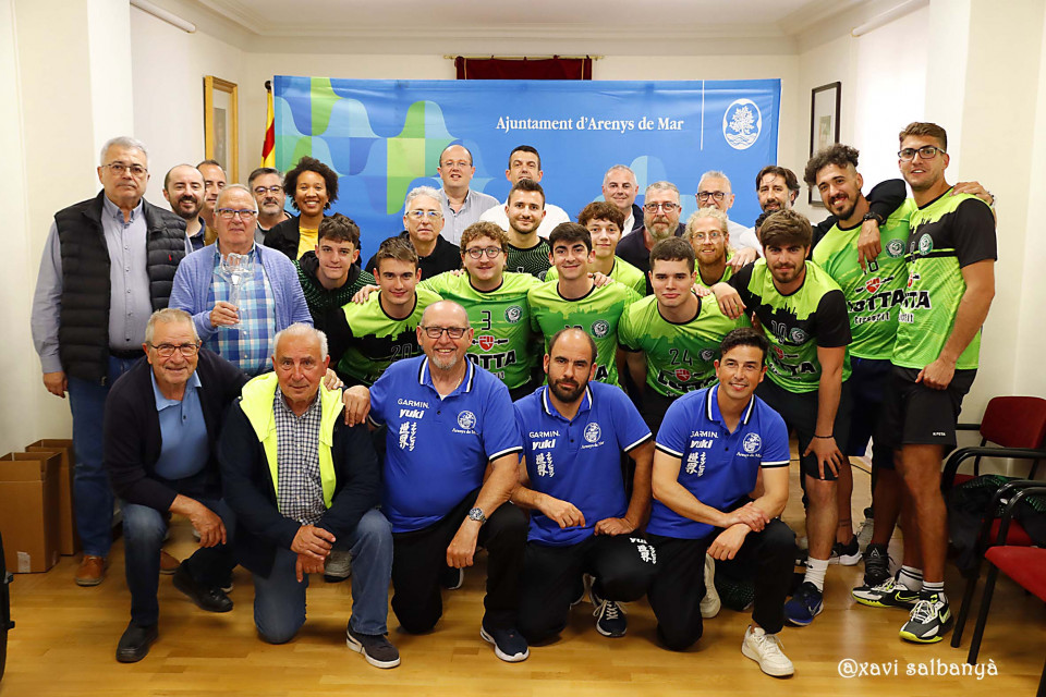L’Alcalde, el regidor d’Esports i regidors de govern i oposició han homenatjat el Club de Pesca Mar-Sport pel tercer lloc aconseguit en el mundial de pesca i, per altra banda, l’ascens a SuperLliga 2 del Sènior Masculí del Vòlei Arenys.